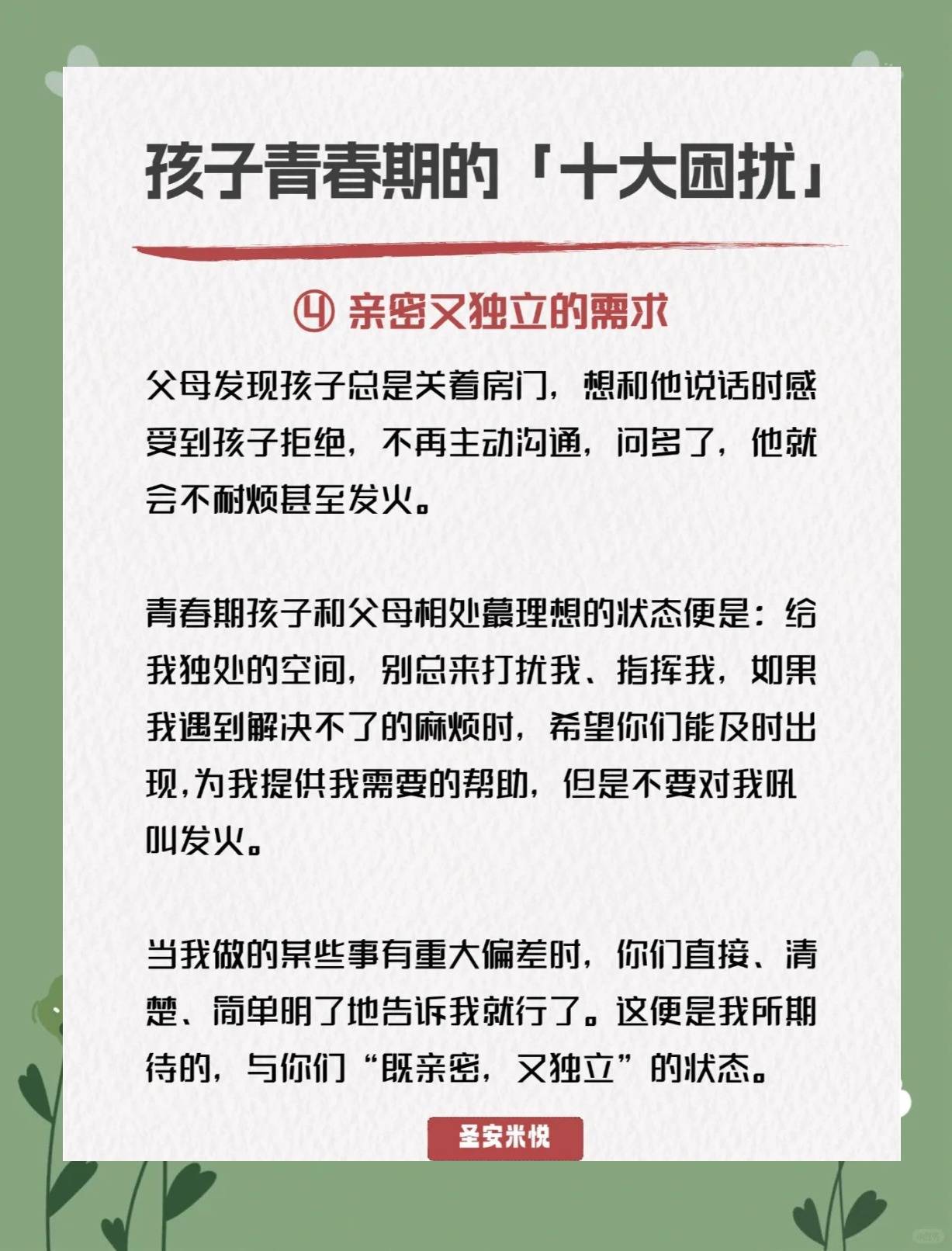 15岁正值青春期,不少家长有这样的困扰:孩子越来越沉默,不爱跟人接触,整日关在房间,房门一锁像关上了与外界沟通的大门。其实青春期孩子的“封闭”从不是故意叛逆,是内心的挣扎与自我保护。家长要停下盲目催促和呵斥,学会共情与接纳。15岁孩子自我意识觉醒,敏感又脆弱,关在房间可能是逃避学业压力、社交困惑,也可能在消化负面情绪,或是单纯需要独处空间。指责“你怎么这么孤僻”“赶紧出来与人交流”,只会让孩子觉得不被理解,更封闭自己。不如放下焦虑,接纳孩子的状态,告诉孩子:“爸爸妈妈知道你现在不想说话、不想出门,没关系,我们不逼你,房间是你的小天地,想待多久都可以。”同时拒绝“强行闯入”,用无声陪伴建立信任。很多家长急于了解情况,频繁敲门、偷看手机、追问房间里的事,这会严重侵犯隐私,摧毁信任。正确的做法是给孩子足够尊重,不随意打扰,用细节传递关爱:把温热的牛奶、水果轻轻放门口,不催促立刻食用;孩子偶尔走出房间时,不追问“你在房间里做什么”,像平常一样聊轻松话题,比如他喜欢的游戏、动漫,不聊学习、不聊压力。